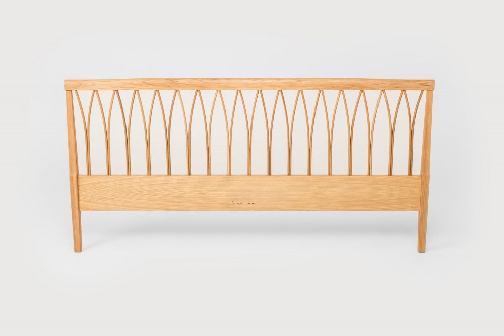 En säng, ett skrivbord, en skrivbordsstol, en serveringsvagn och en förvaringsmöbel hörde till möblerna som Carl Malmsten formgav för bomässan Bo Bättre på Guldheden i Göteborg 1945. Långt senare skapades en hel möbelserie baserade på dessa, namngivna efter platsen för bomässan. Samma år som mässan hölls tilldelades Carl Malmsten Prins Eugen-medaljen för framstående konstnärlig verksamhet. Sänggaveln med det eleganta mönstret av spjälor tillverkas i flera storlekar, och enbart som huvudgavel eller som komplett sängram med fotgavel.